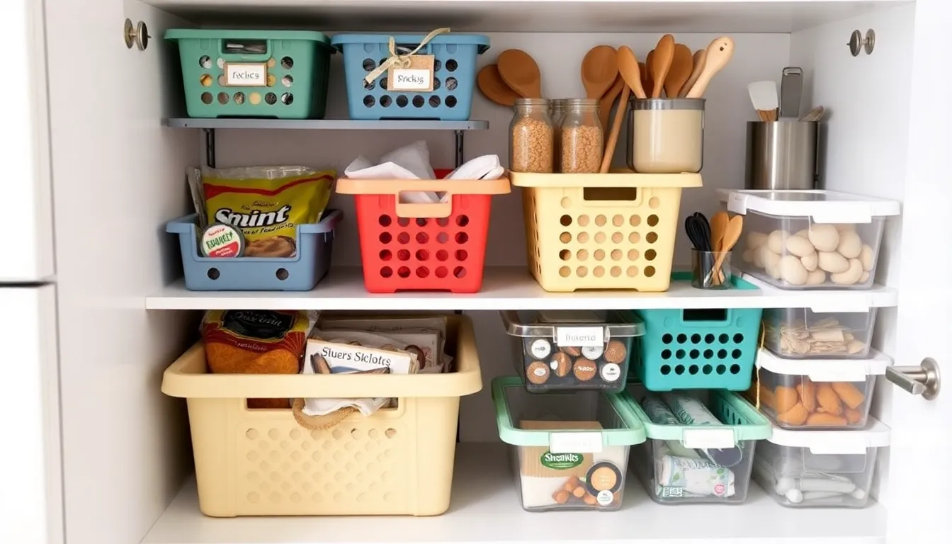 Space is often limited in kitchens. Use stackable bins to make the most of vertical space. Placing like items together fosters efficiency, ensuring everything has its own spot. Utilize over-the-door organizers for additional storage, keeping items off countertops. Drawer dividers maintain order among utensils, preventing chaos during meal prep. Use small caddies to hold frequently used items, allowing for easy access during cooking. Creative container placement can turn unused corners into functional storage areas. Every inch matters when it comes to optimizing kitchen organization.